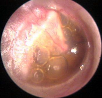 医生表示:用耳内窥镜检查病人的耳部,会发现鼓膜内陷,鼓膜呈淡黄或橙红色,有时透过鼓膜可见气泡。