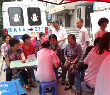 5月31日一大早,西安海容阳光城社区广场上就人头攒动,西安晚报邀请到西安新城中大耳鼻喉医院走进社区开展公益义诊活动,社区居民排着队,他们一边互相诉说着自己的身体状况,一边等候着中大医院医生为他们排忧解难。
