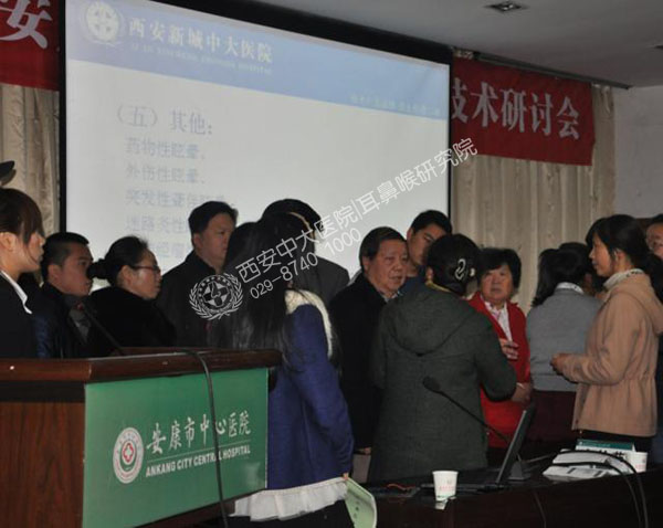 2014年11月9日,由安康市医学会耳鼻喉科分会举办的“陕西安康·耳病临床诊疗新技术研讨会”已经圆满结束。会上,西安中大耳鼻喉医院主讲医生对耳病临床诊疗最新科研成果进行分享,赢得在场精英们的交口称赞 ,为国内耳病诊疗技术做出重大贡献。与此同时,中大医生的讲座也给更多耳病患者带来了“福音”。据悉,此次巡回讲座将使耳病临床诊疗技术迈上一个新台阶。