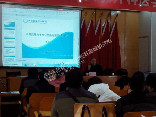 研讨会首先天,主要由西安新城中大耳鼻喉医院耳科学科带头人张全安教授讲述:中耳炎外科手术分型新方案的临床研究、中耳炎准确诊断,精准治疗的诊治理念、胆脂瘤型中耳炎形成机理的最终揭秘、外耳道胆脂瘤并发症的理论与临床研究和诊治性鼔窦插管术的临床研究和应用等耳病临床诊疗新技术讲解。来自省内外的医生学者紧紧围绕会议的内容和主题进行了认真学习和热烈讨论,各位代表踊跃发言,学术气氛浓厚。
