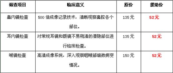 2、每日前20名由中国五官基金会提供耳鼻喉内窥镜筛查援助,单项检查援助价52元。