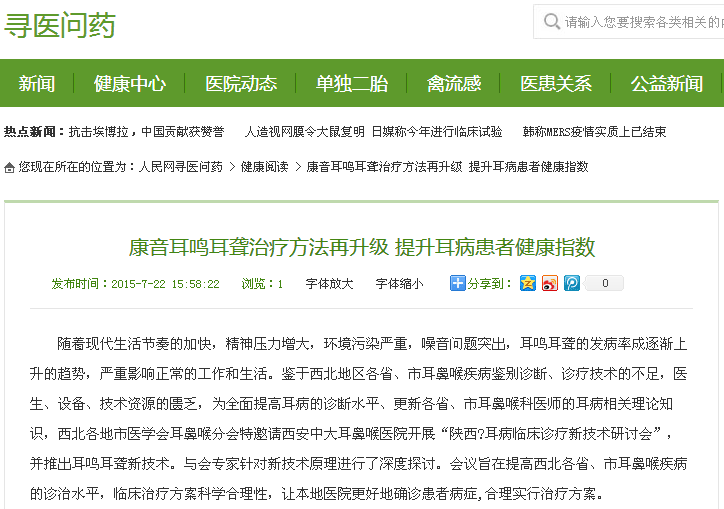 传统治疗耳鸣耳聋,单纯针对坏死毛细胞研究或单纯药物治疗无法取得明显疗效,广大耳鸣耳聋患者无法得到有效医治。为此,西安中大耳鼻喉医院与【 耳听美】等大型医疗设备机构合作成立了“中丹听力技术合作”,与 等大型医疗设备机构合作,成立“听力检测室”;并与国内知名康音耳病达成战略合作,将其科研成果运用于临床。