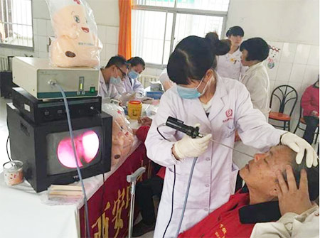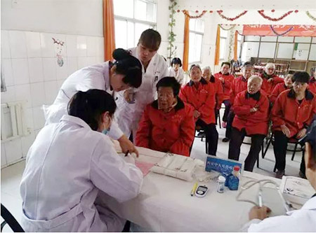 义诊团医护人员耐心细致地为敬老院的每一位老人进行心率血压、耳部、鼻部、咽喉部健康检查,并进行健康指导,讲解疾病的防治措施和注意事项,指导老人们合理用药,做好日常生活保健,并给老人们赠送健康宣教资料,受到了老人们的一致好评。