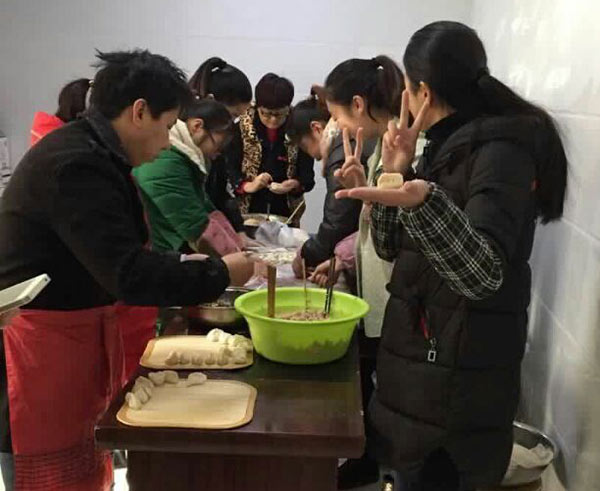 热闹的包饺子现场