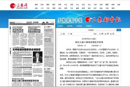 “如今家长们在选择防霾措施上,对孩子的健康防护只是停留在戴口罩认知阶段。针对人们普遍对雾霾的无知和对孩子们口鼻喉保健的认识不当,学校又是人口密集,通风可能较差,容易发生交叉感染等状况。”赵大山建议政府相关部门尽快制定儿童口鼻喉的保健医学标准;定期举行口鼻喉医生进校园等科普活动,邀请家长参加,进一步加强认知;加强改善儿童口鼻喉保健现状,促进我省广大儿童的身心健康发展,让他们更加茁壮地成长。