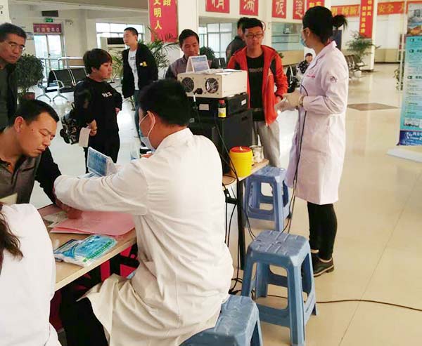 咸阳长途汽车站的义诊台前,不多时就聚集了一大批前来问诊的旅客,有活泼好奇的青年学生,疲惫沉默的中年旅客,或是步履缓慢的老者。义诊医护人员一一耐心接待检查,量血压、测血糖、做耳鼻喉内窥镜检查、进行健康知识宣教。